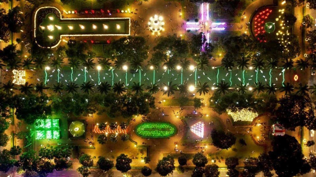 A Praça da Liberdade, em Belo Horizonte, vista de cima durante as noites que antecedem o Natal. (Fonte: Jornal O TEMPO)